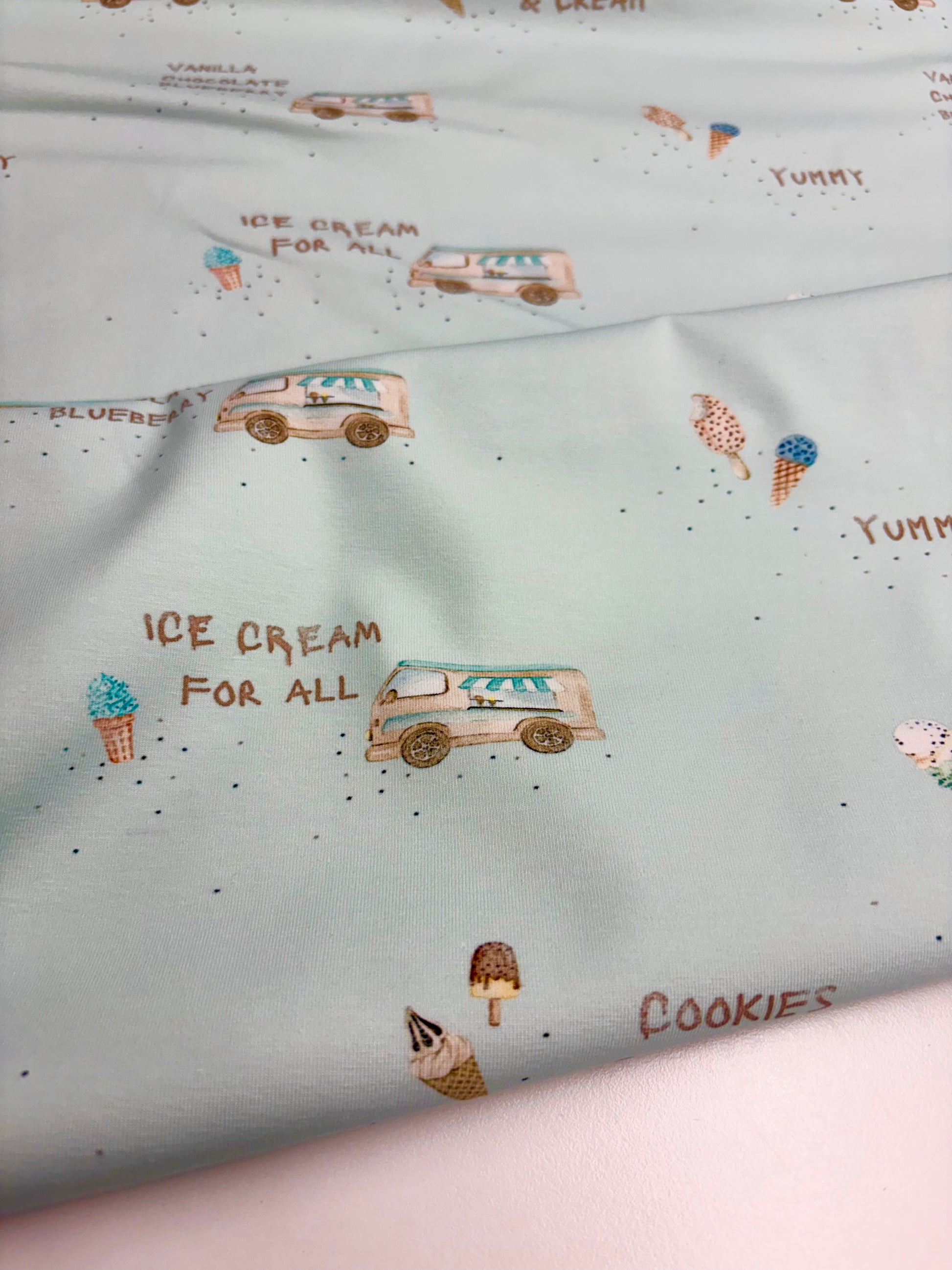 Traumhaft weicher Bio Jersey mit Biofarben reaktiv bedruckt.
